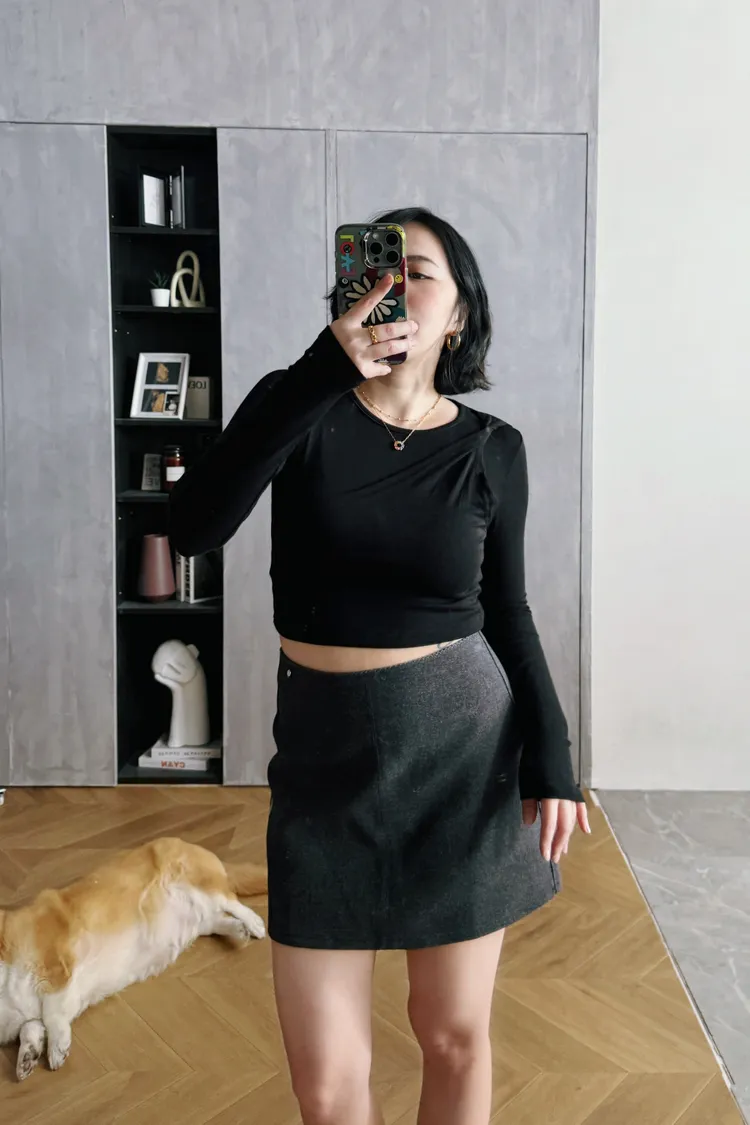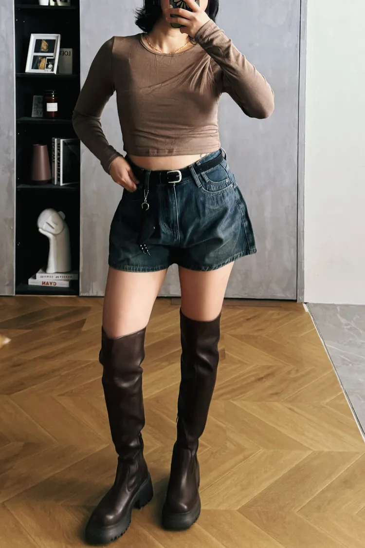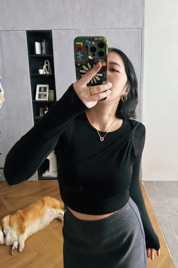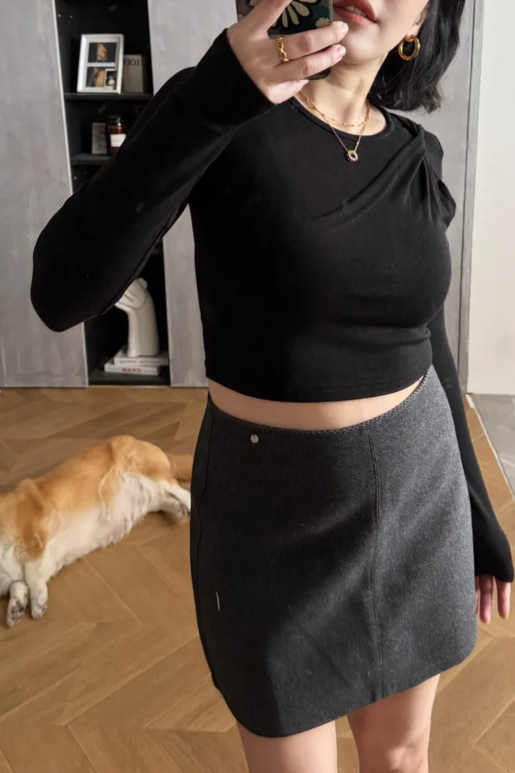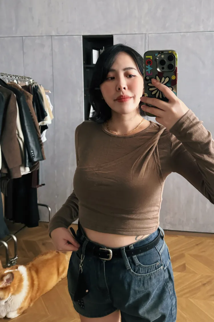 斜捲肩假兩件韓國棉T