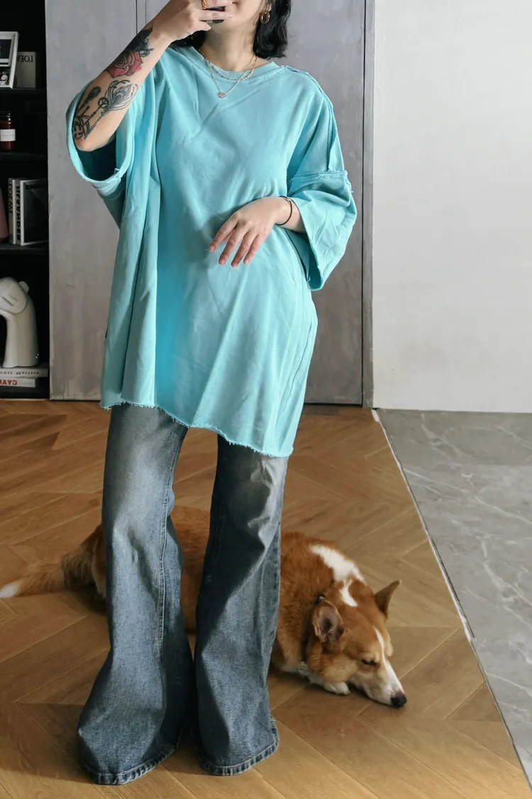 捲邊衛衣短袖大T 特