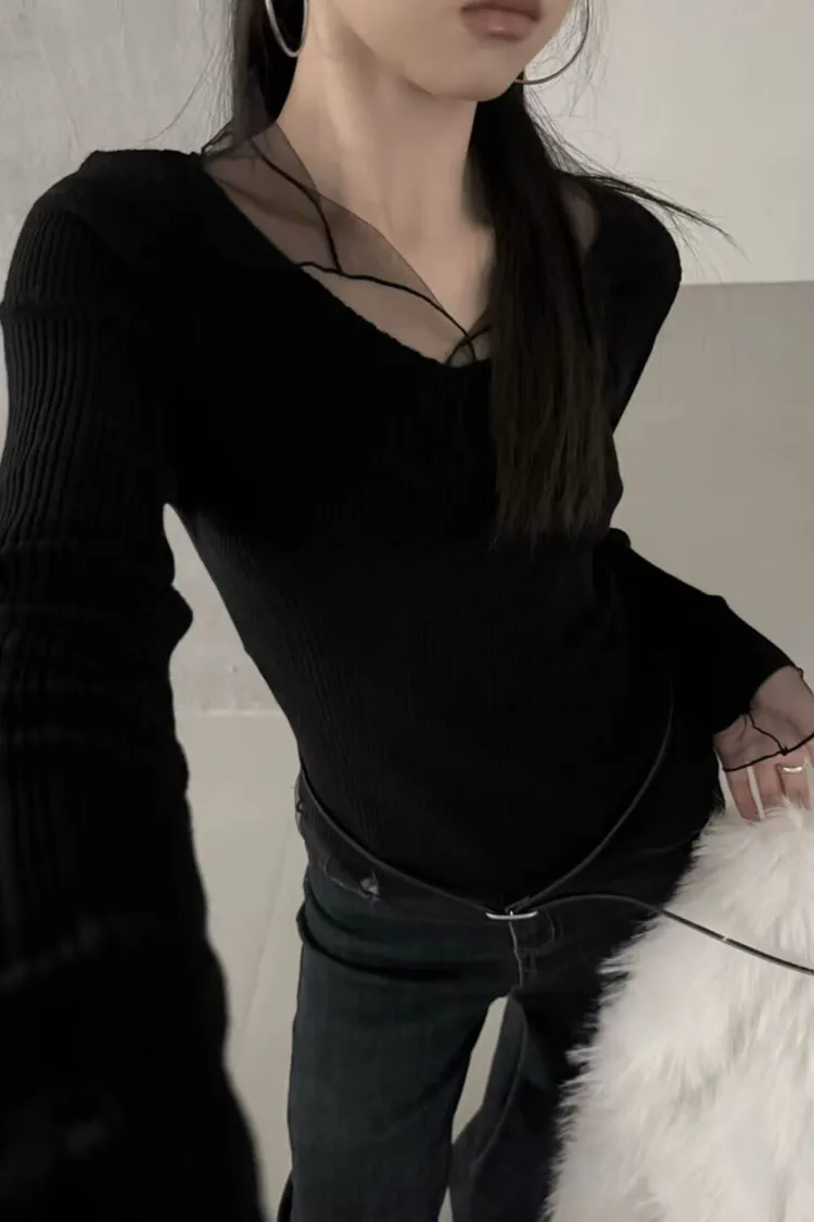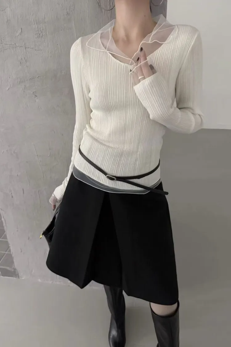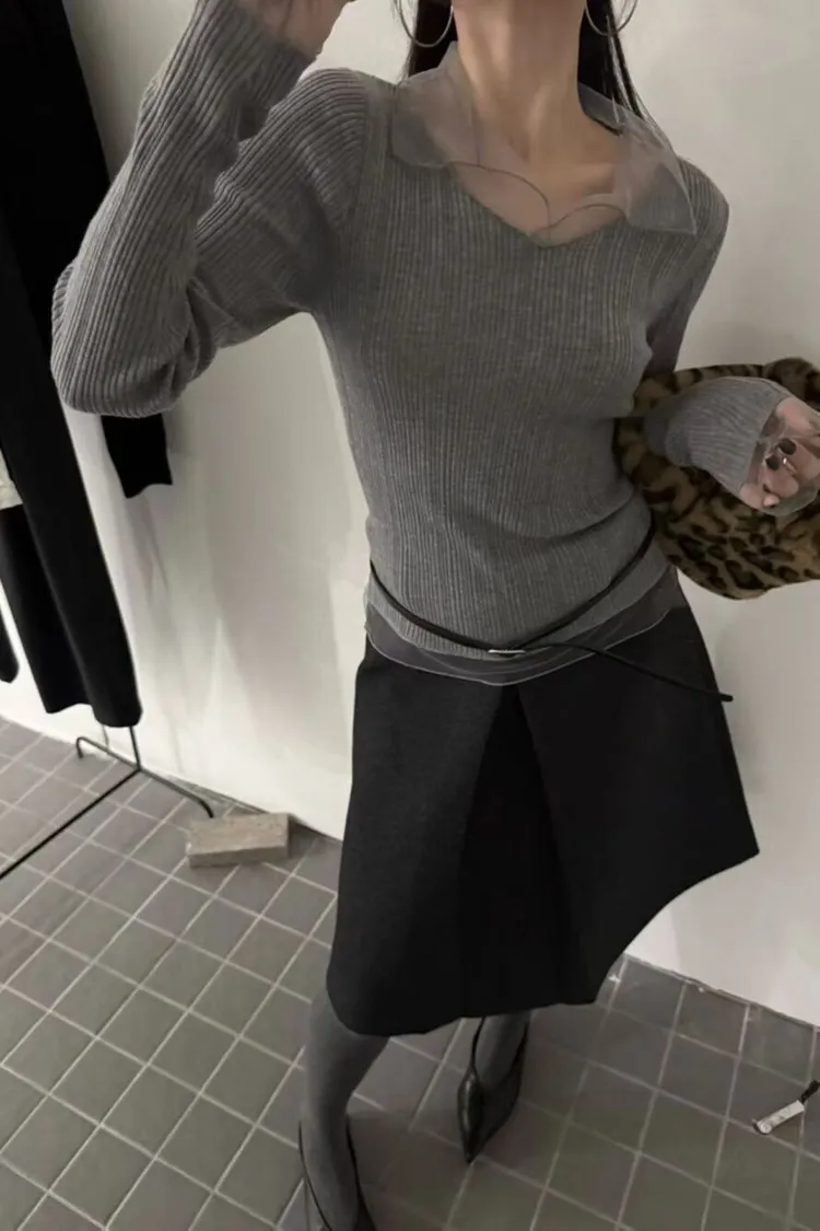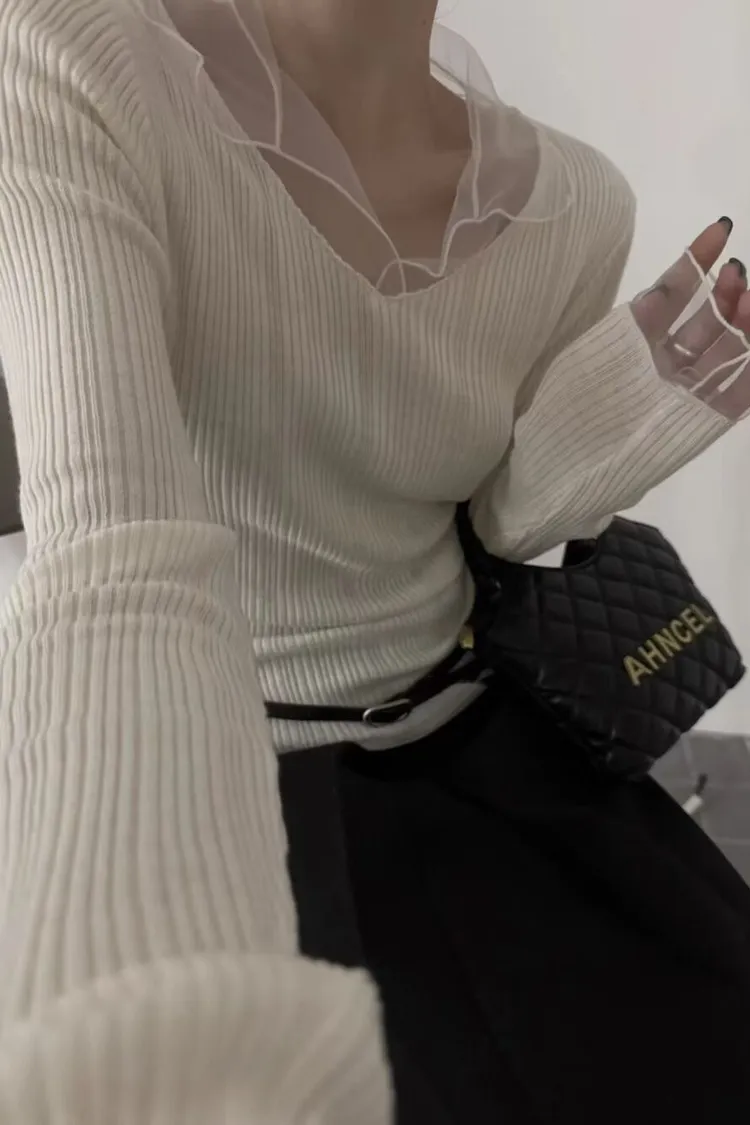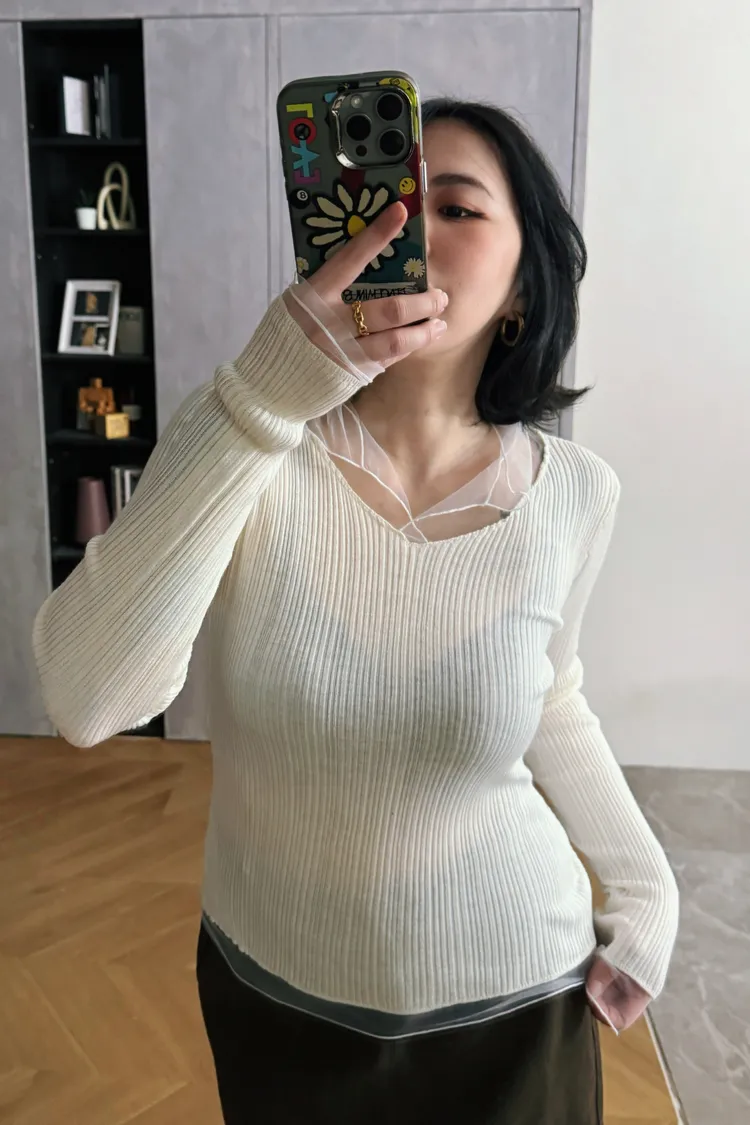 紗領柔順針織上衣