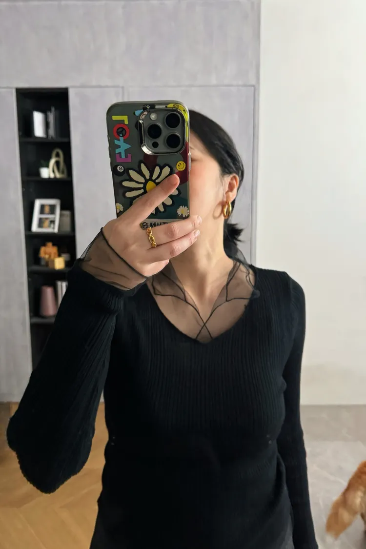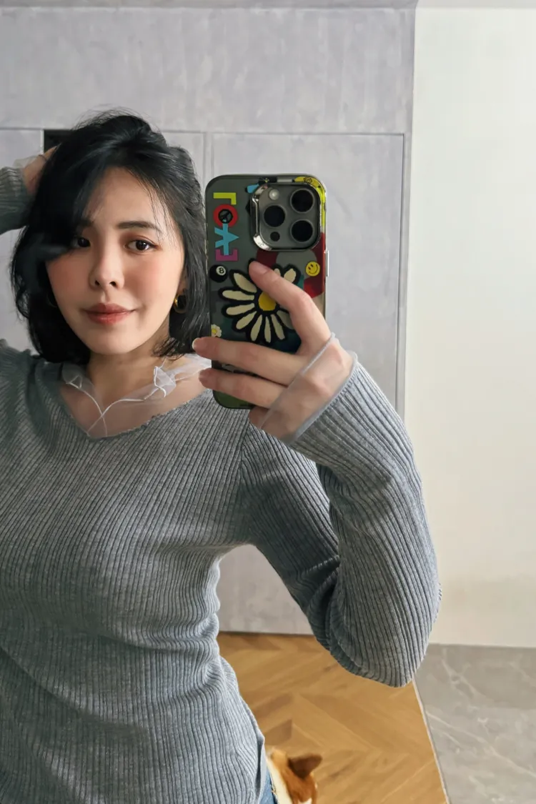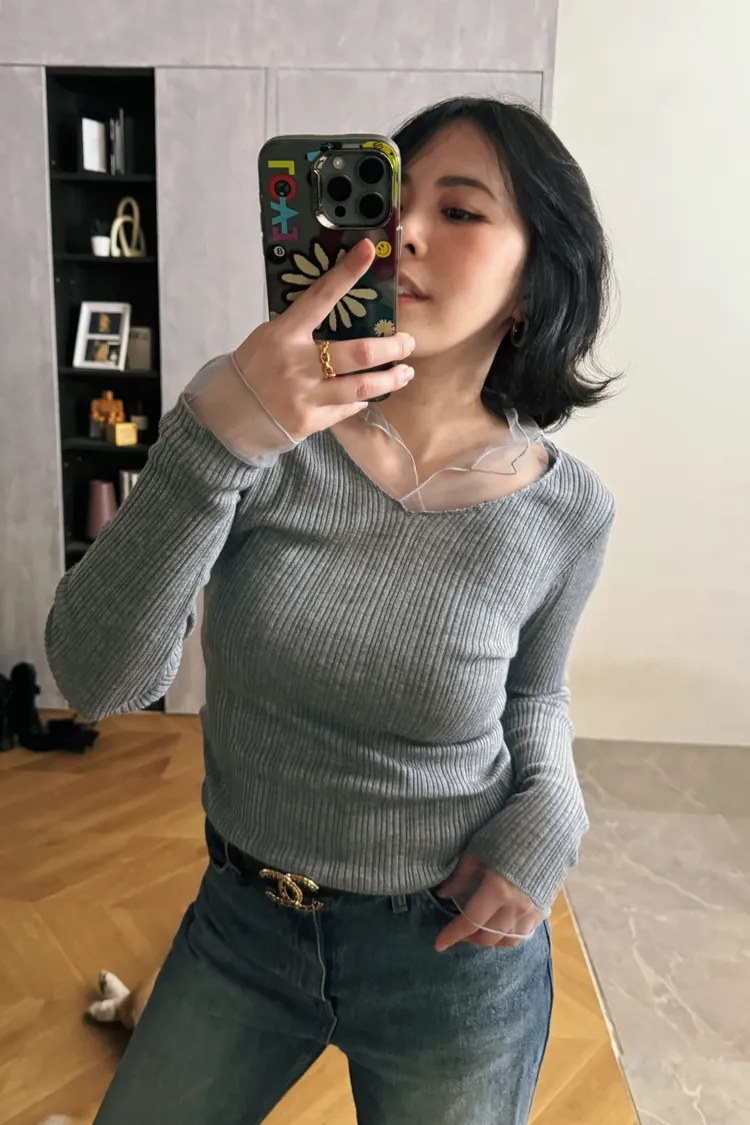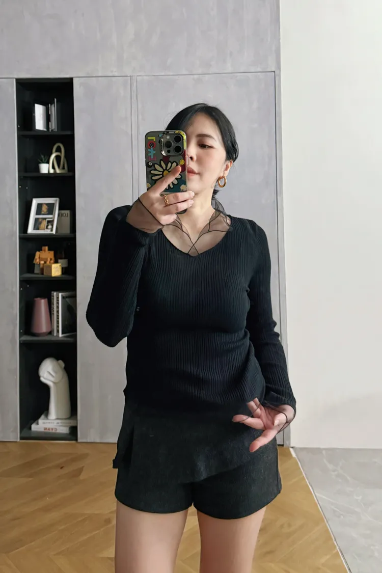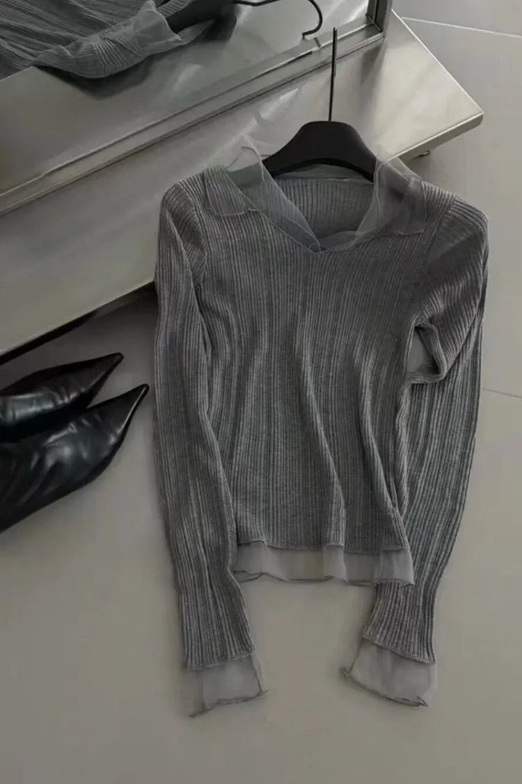 紗領柔順針織上衣