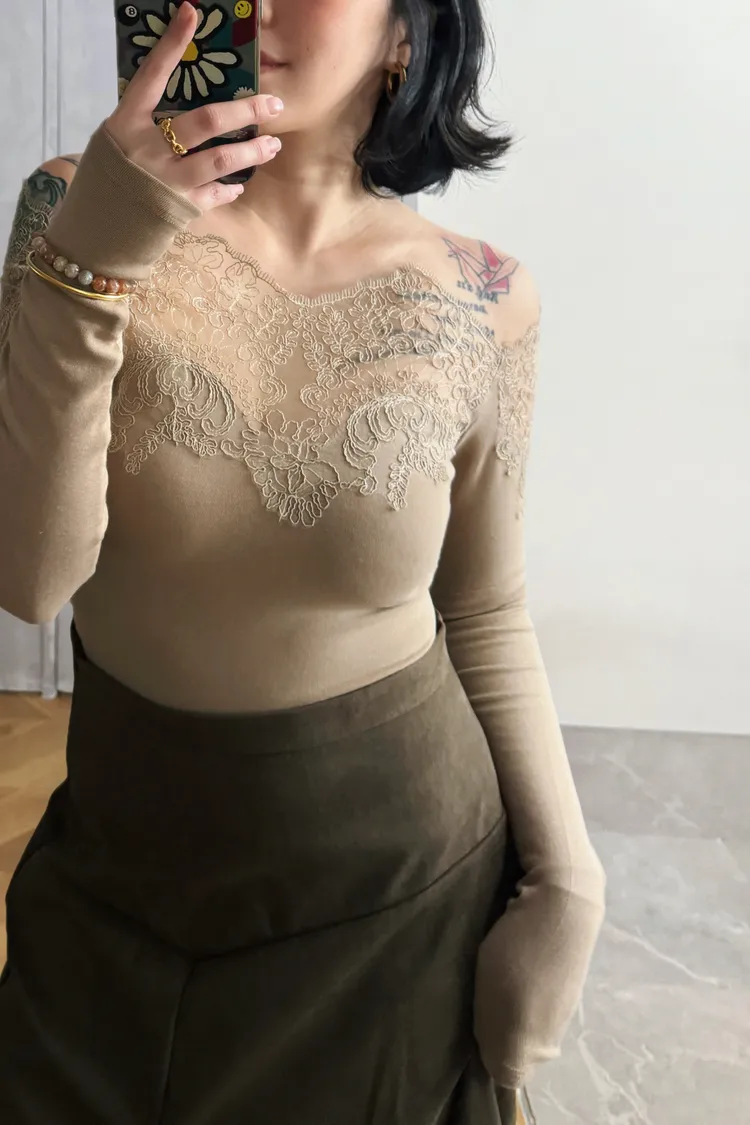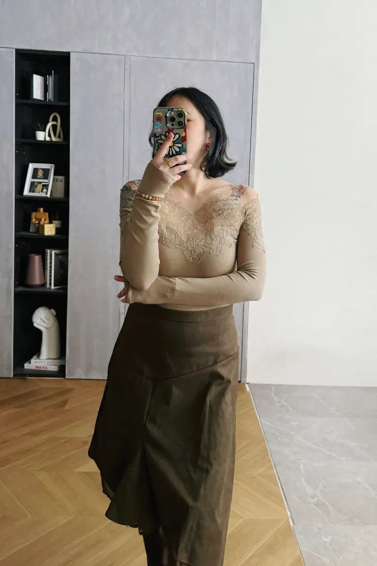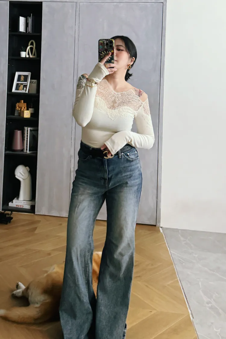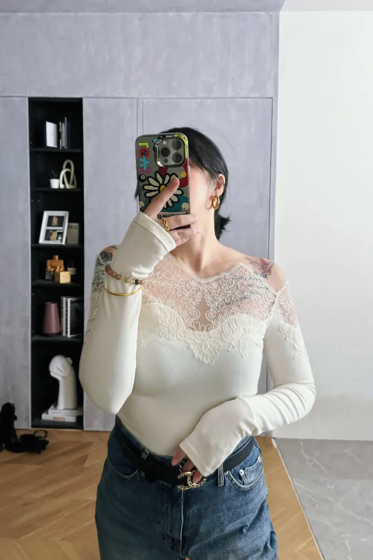 一字蕾絲雕花上衣