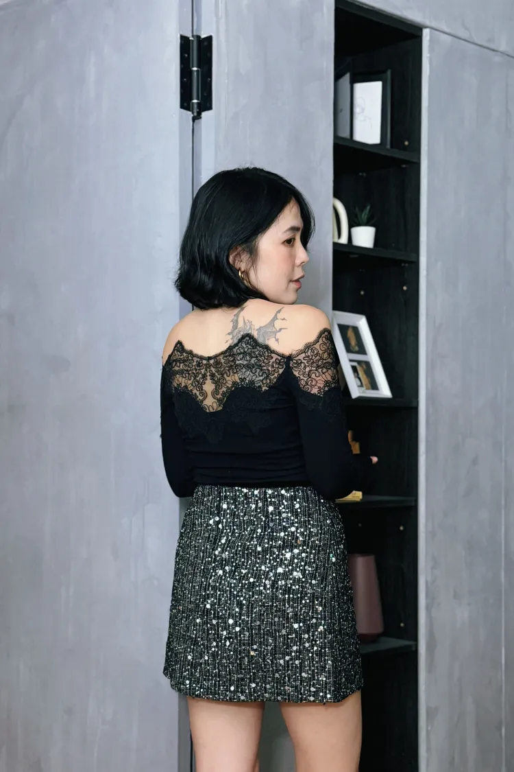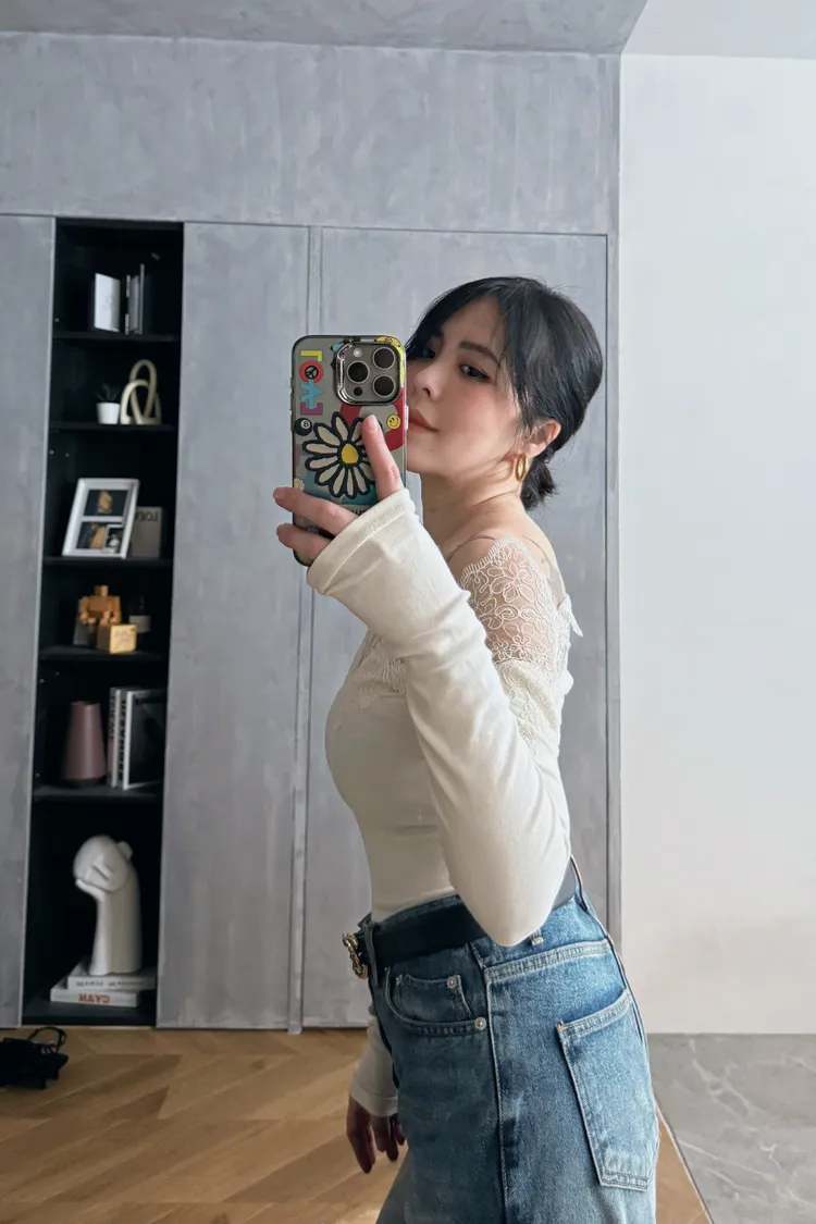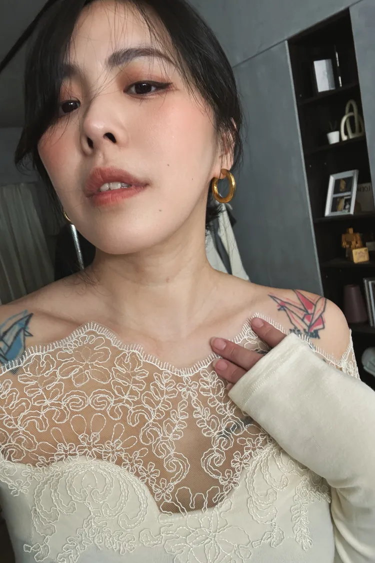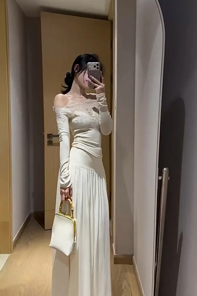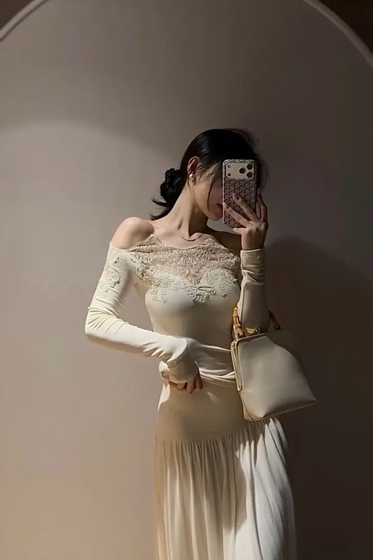 一字蕾絲雕花上衣