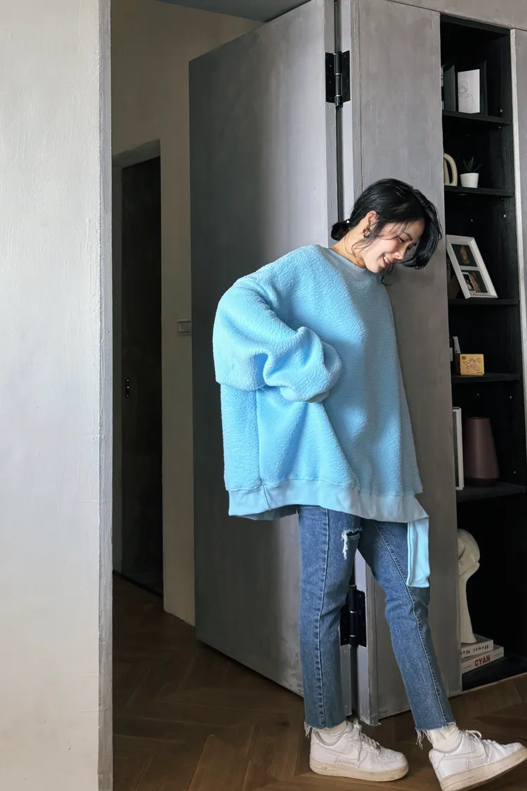QQ毛亮色垂墜大件T