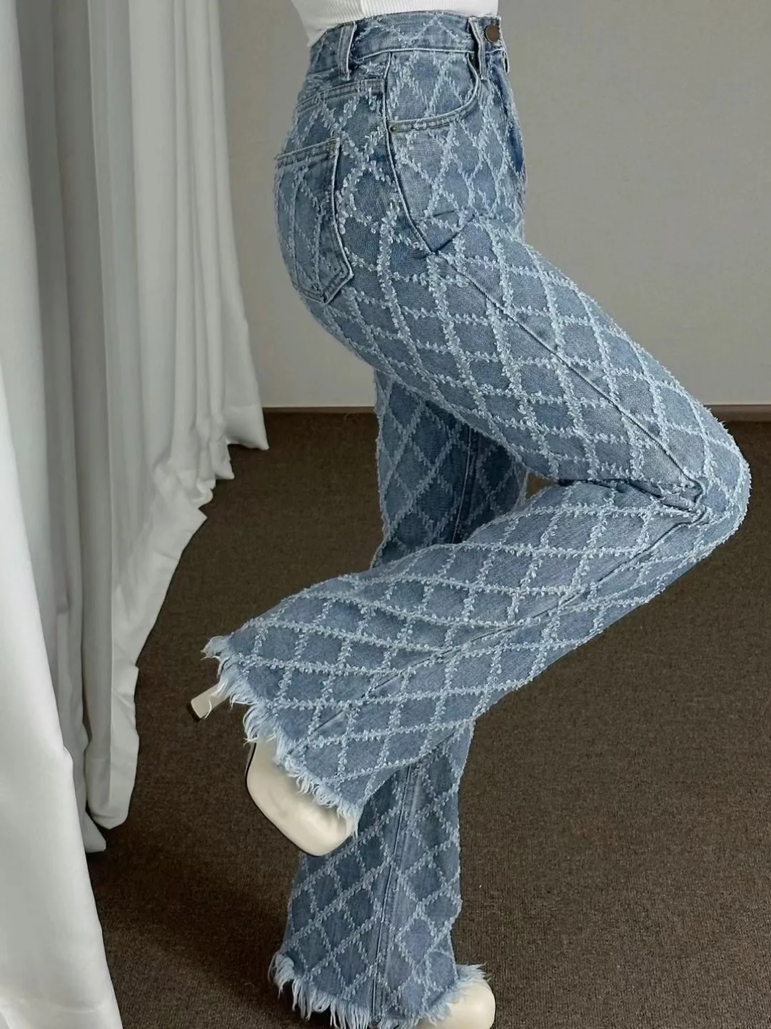 菱格鬚鬚牛仔褲 S一件
