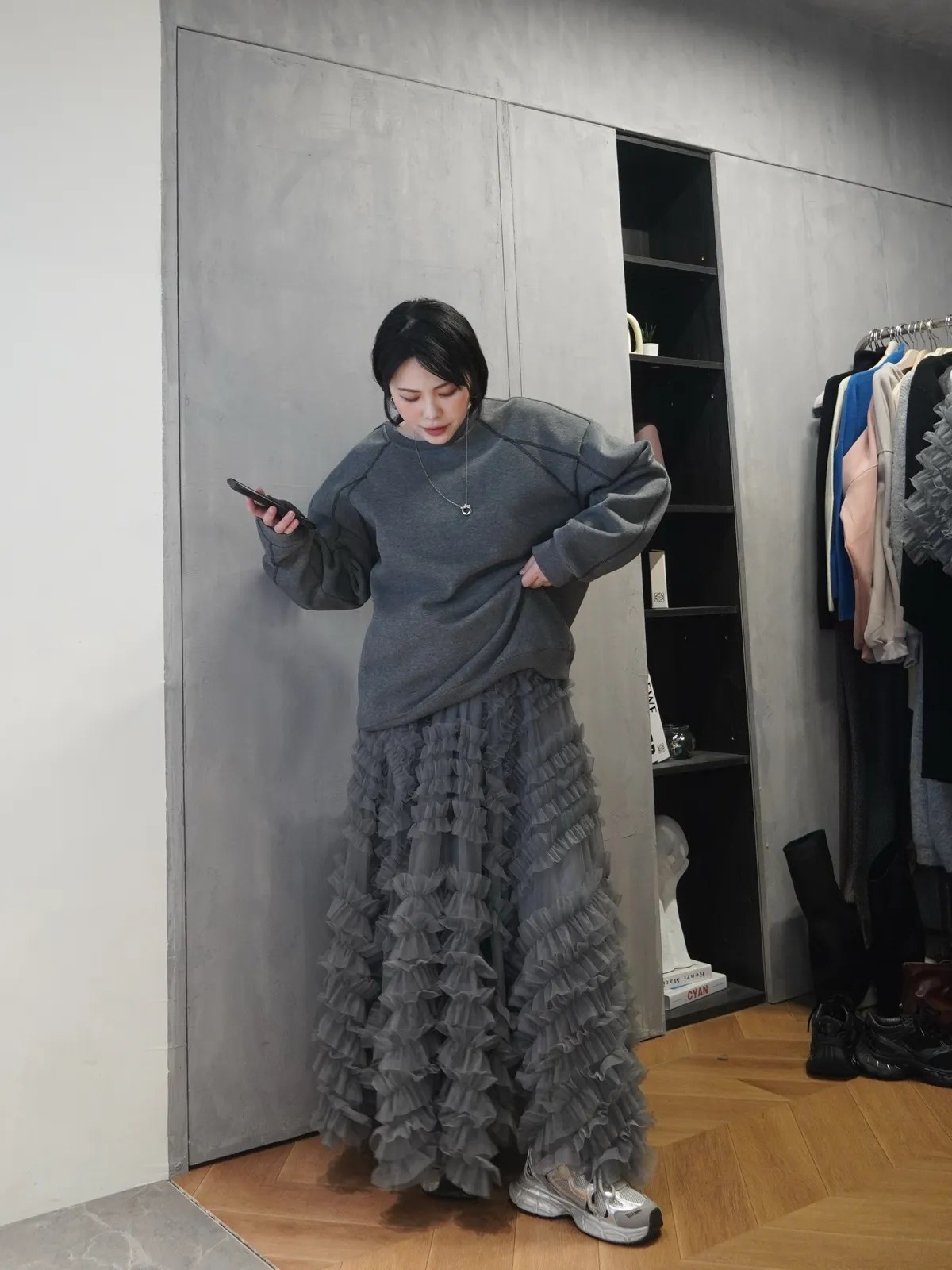 加絨配線寬鬆套裝 現貨