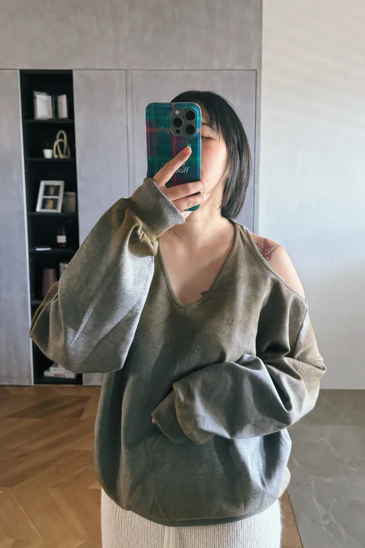 暈舊露肩挖背大T