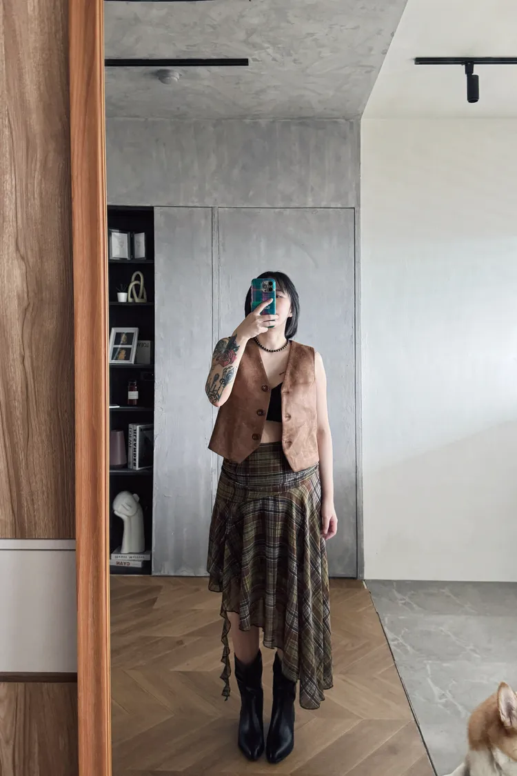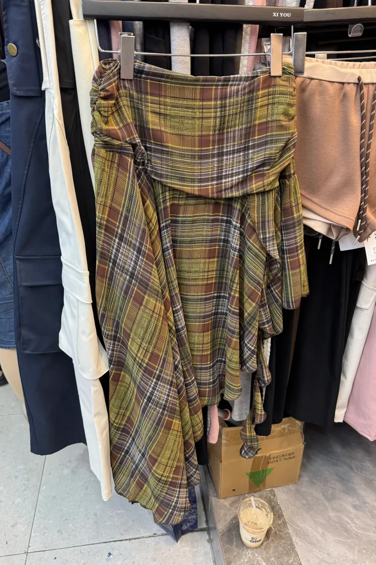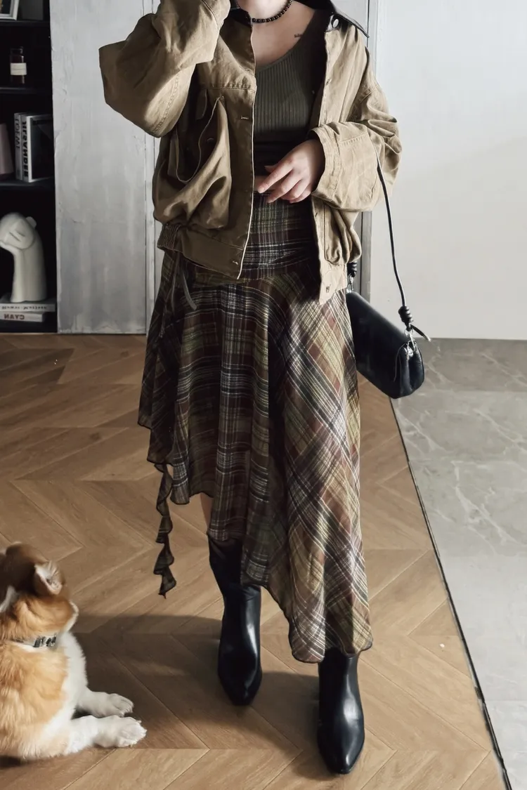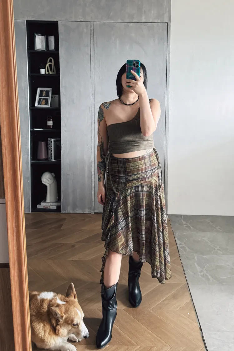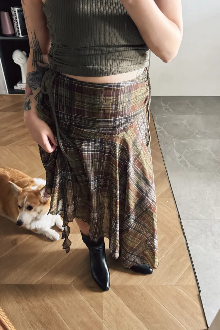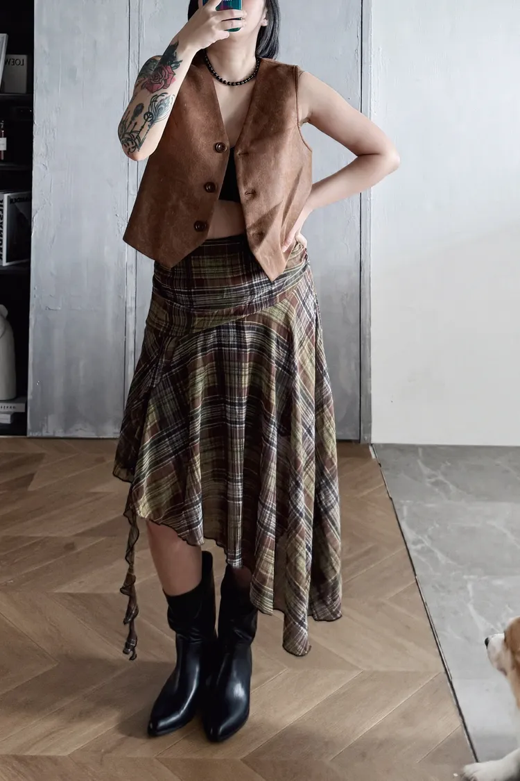 格紋斜擺飄飄裙