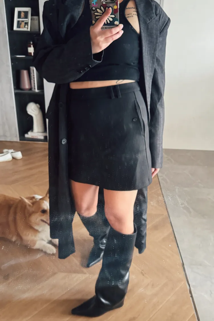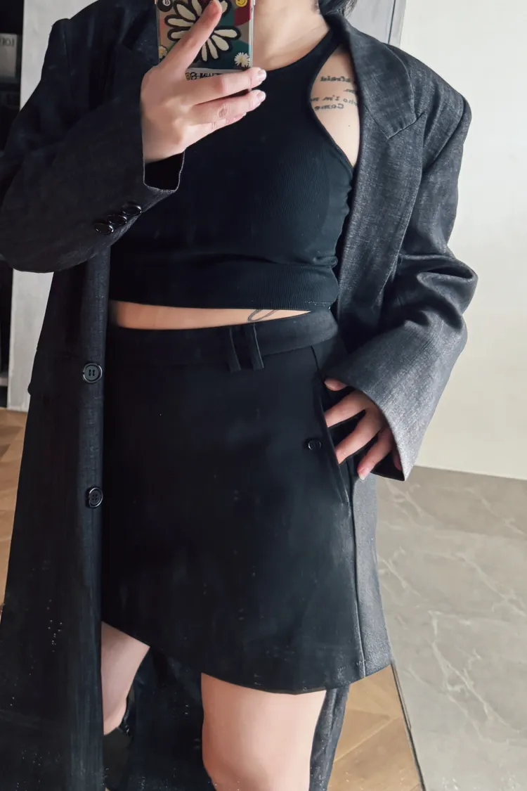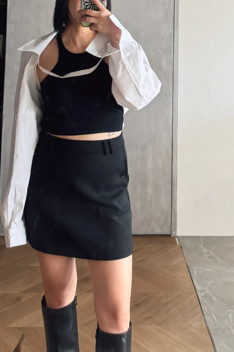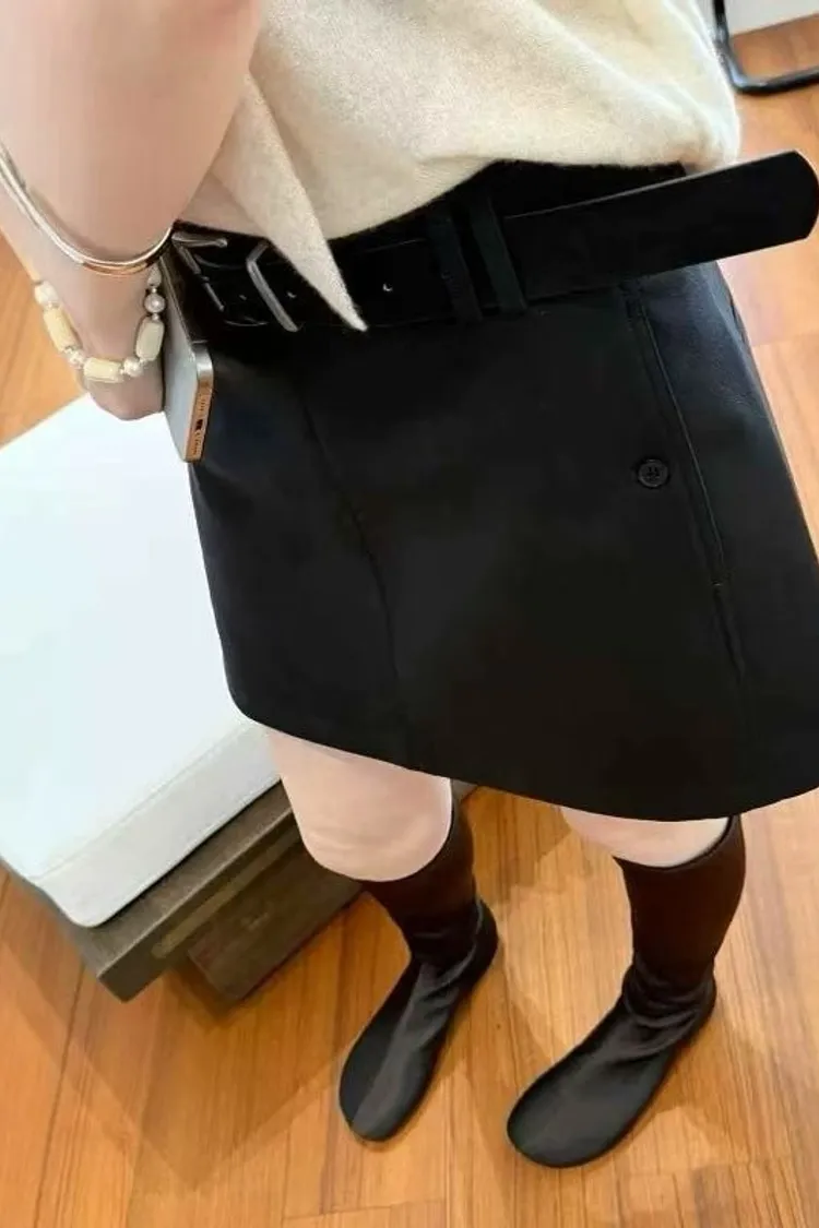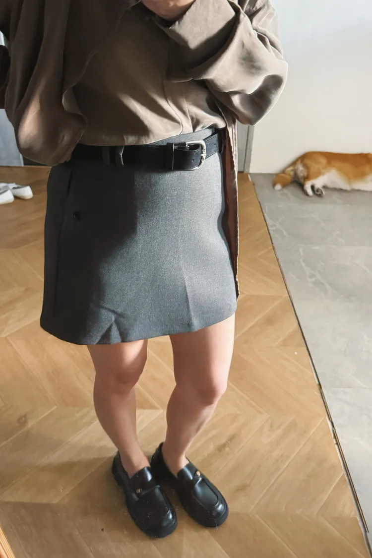 簡約西裝中裙(附腰帶)