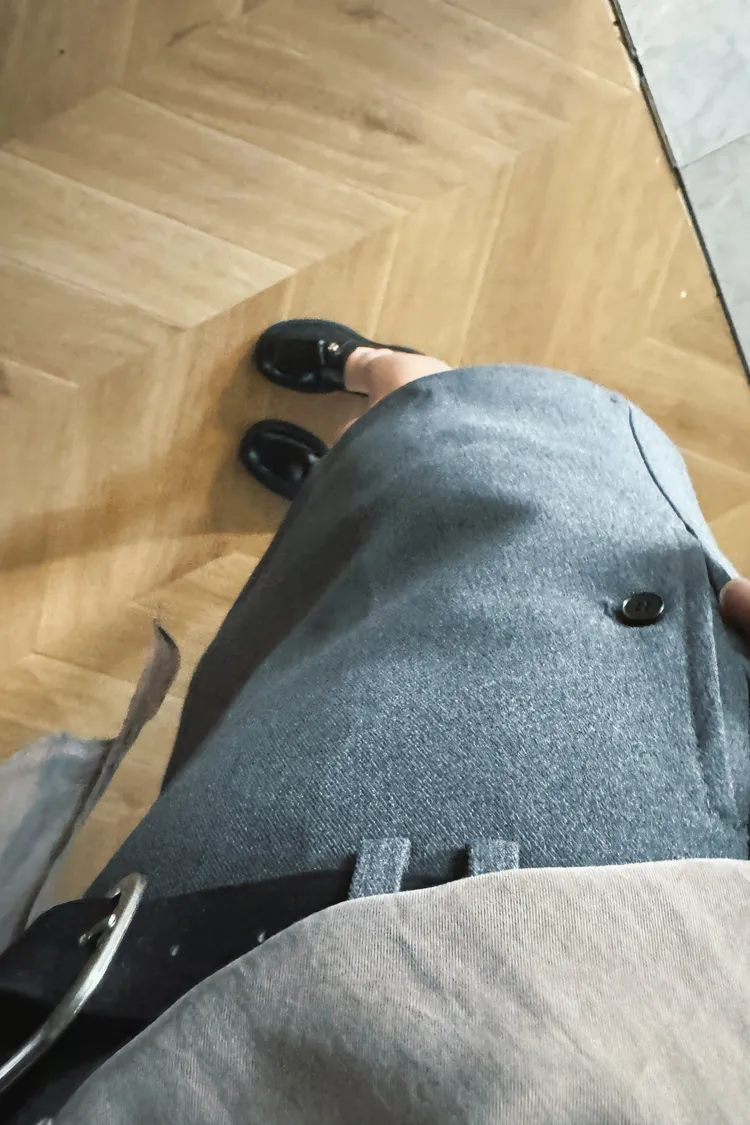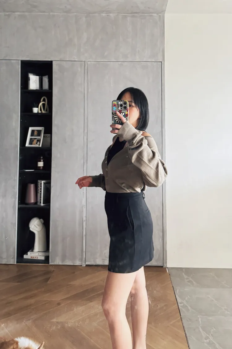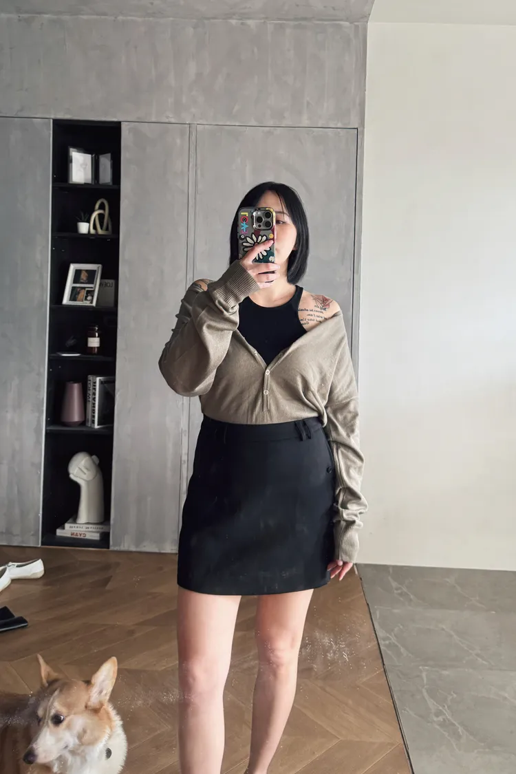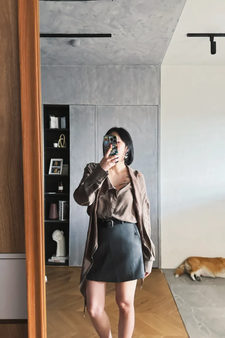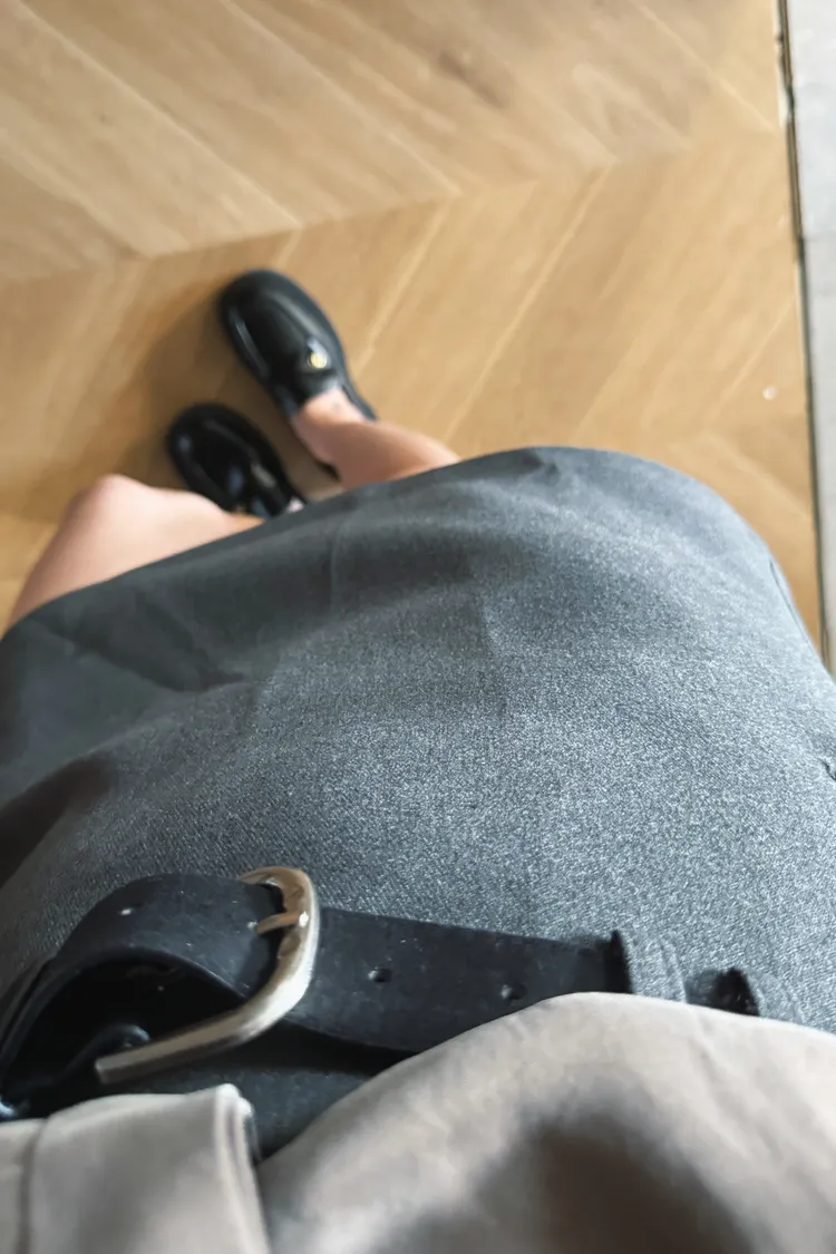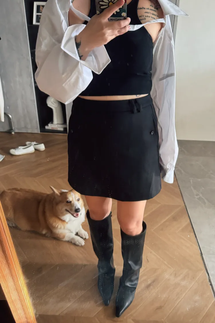 簡約西裝中裙(附腰帶)