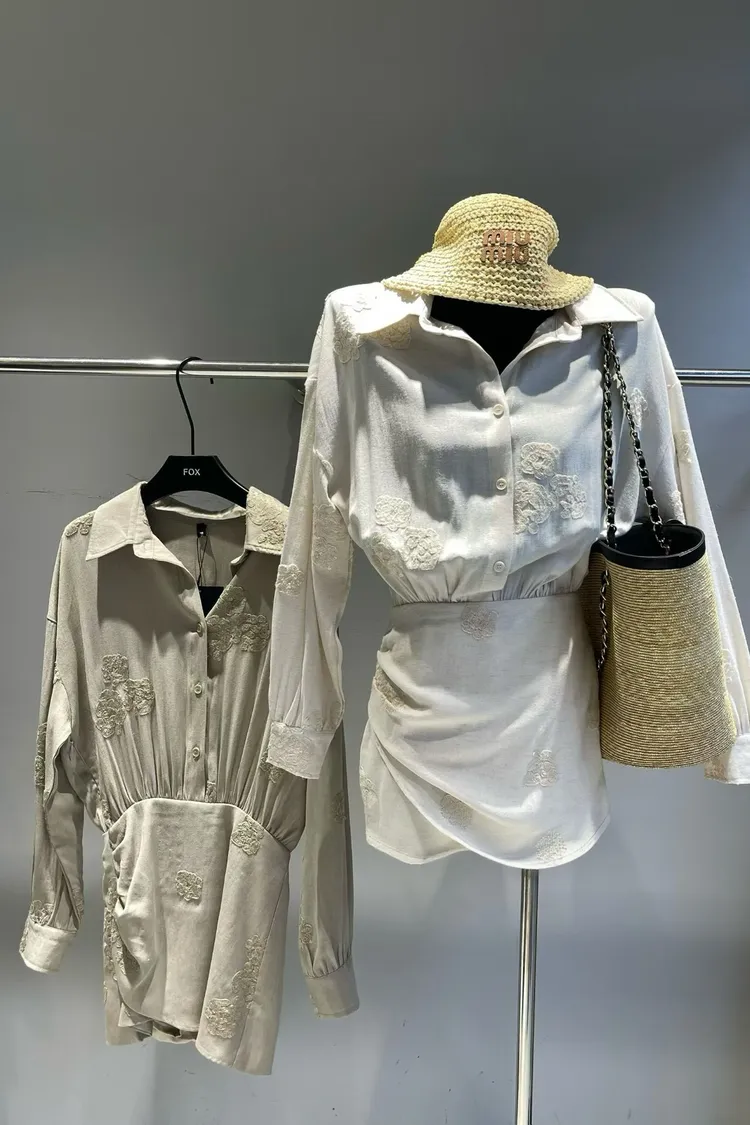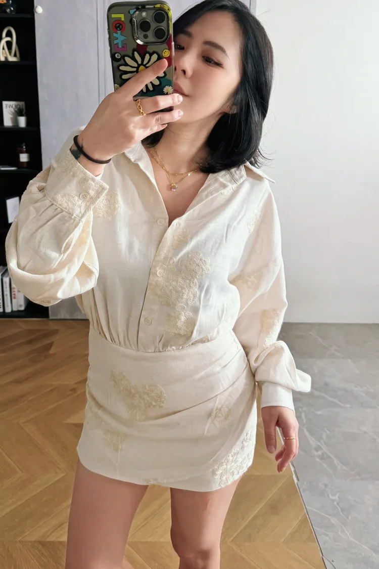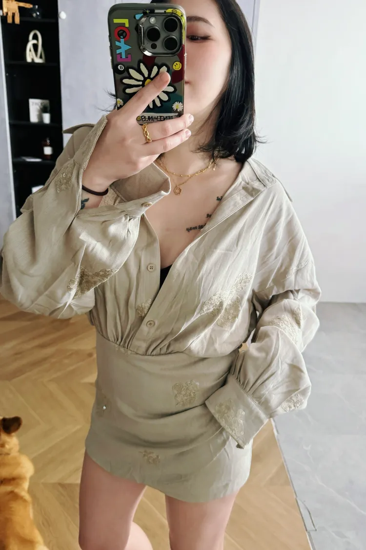 重工繡花襯衫連身褲