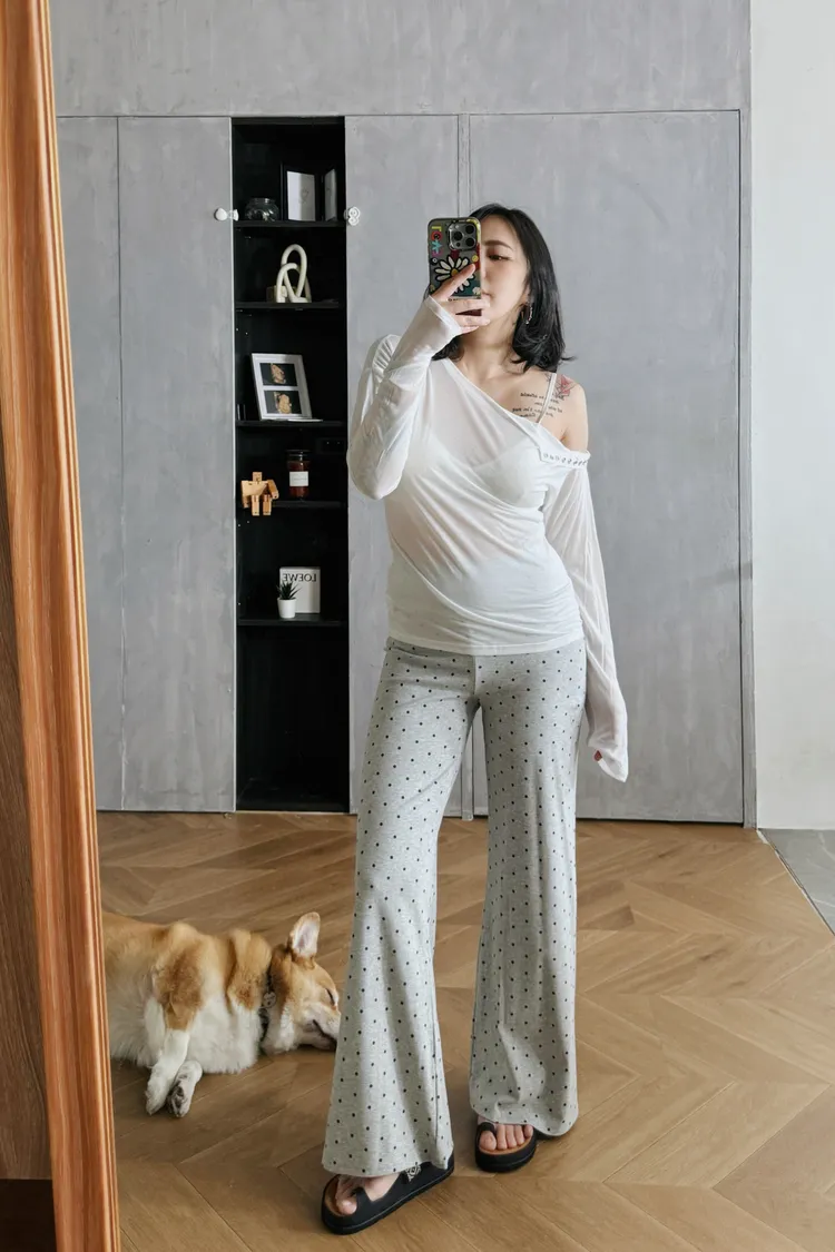 點點拼腰棉褲