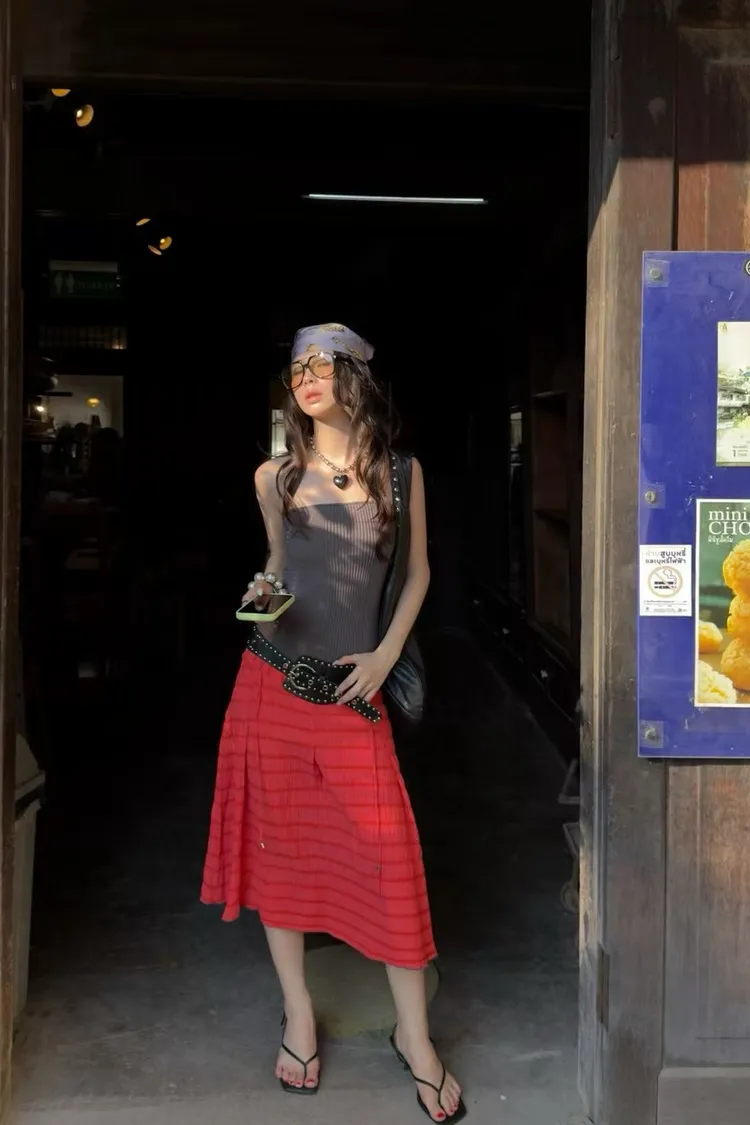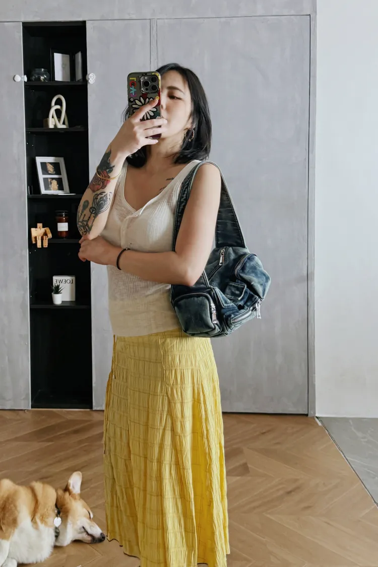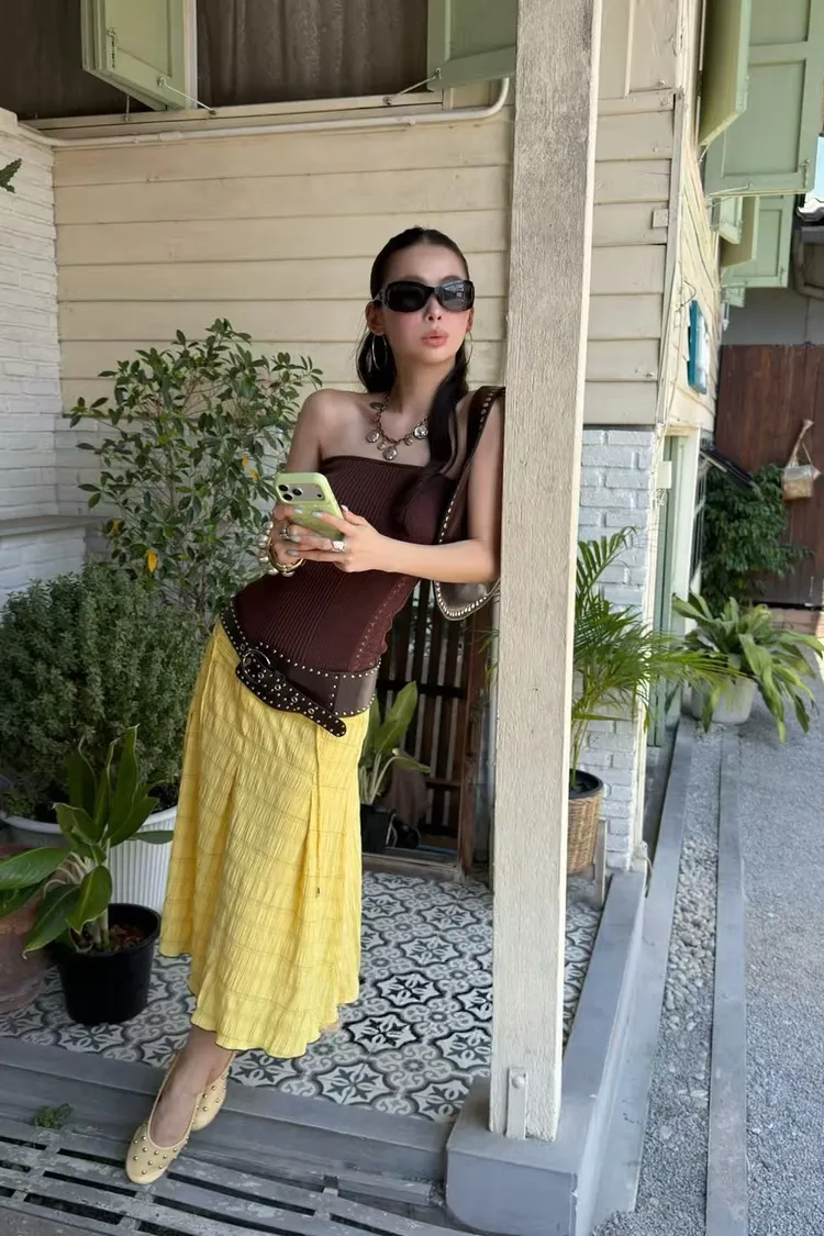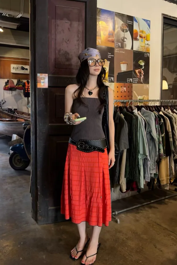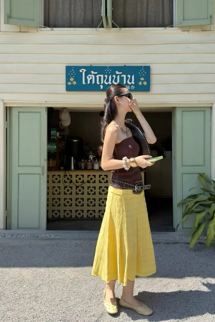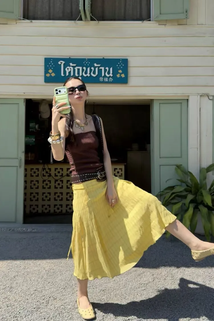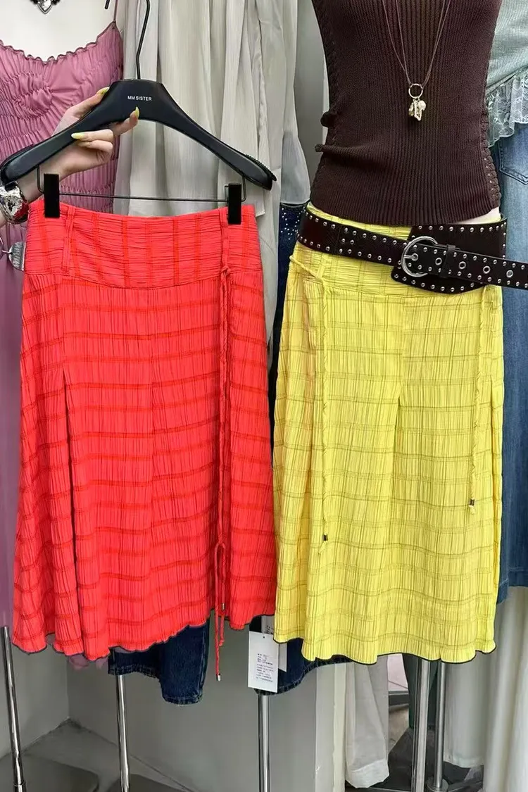 夏日泡泡格紋A裙